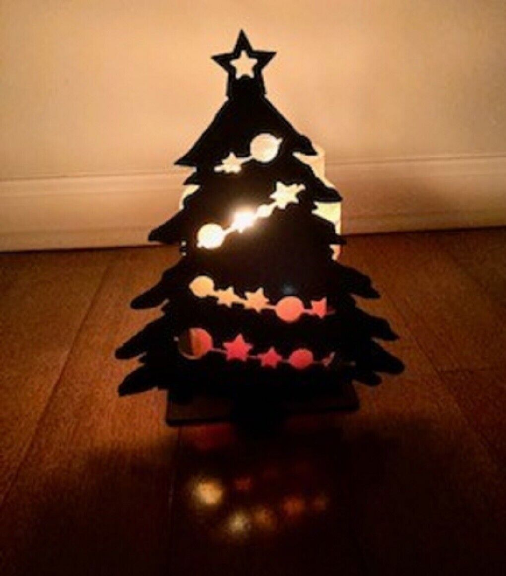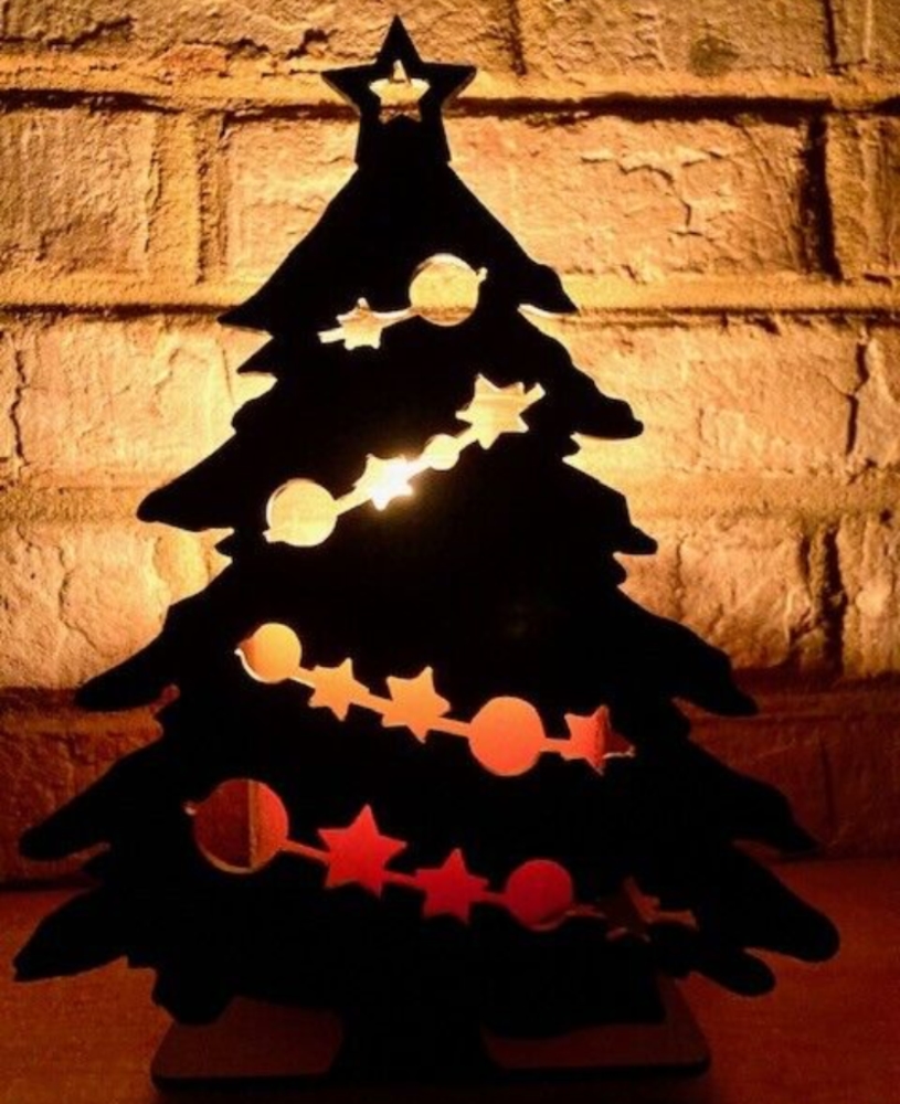 This Christmas Tree is perfect for displaying your candles with all your festive holiday decor– and our depicted photos show how varied it can look just by the change in candle color & vibrancy! Just set your candle or tealights on the flat plate and see how festive it looks as the candle(s) burn!
